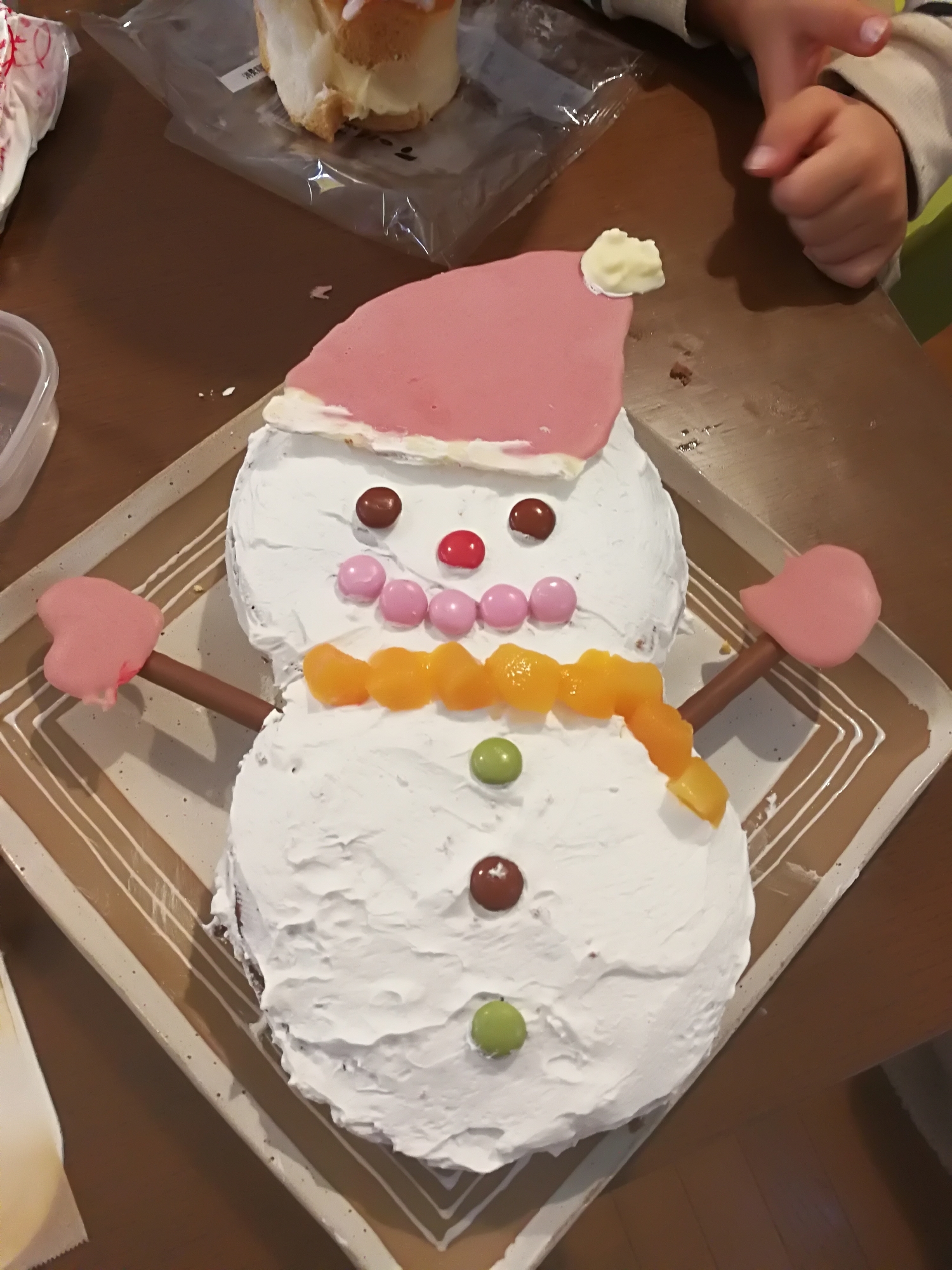 Xmas ハッピー雪だるま 我が家のクリスマスケーキ16 食物語 白桔梗 食べ歩き 外食 手料理など